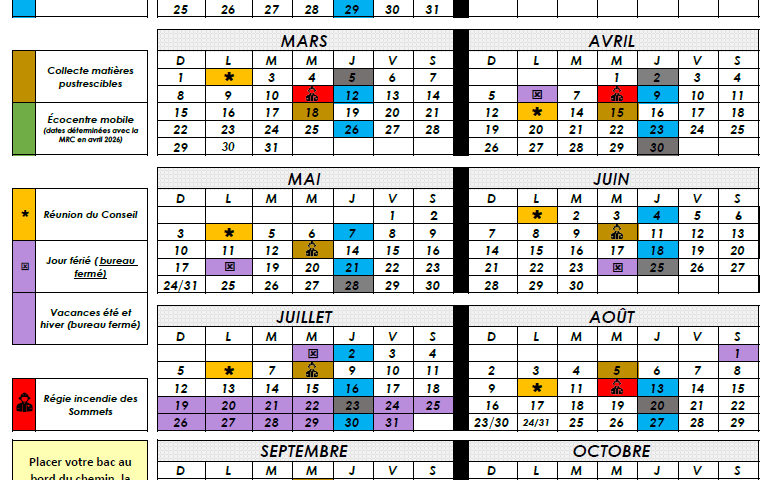 Calendrier 2026