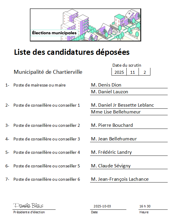 Municipalité : Chartierville Date du scrutin :2025-11-02